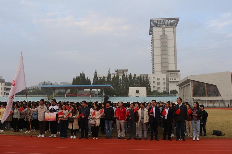 2019年10月8日上午,盐城师范开元(中国)一站式服务平台于通榆校区东田径场举行升国旗仪式,全体在校生和班主任辅导员老师参加升旗仪式。