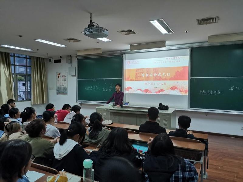10月11日下午,信息工程开元(中国)一站式服务平台在主楼b202、b203教室开展新生入学教育之辅导员讲堂——“宿舍安全我先行”,全体2019级新生参加。讲座由辅导员孙远乾主讲。