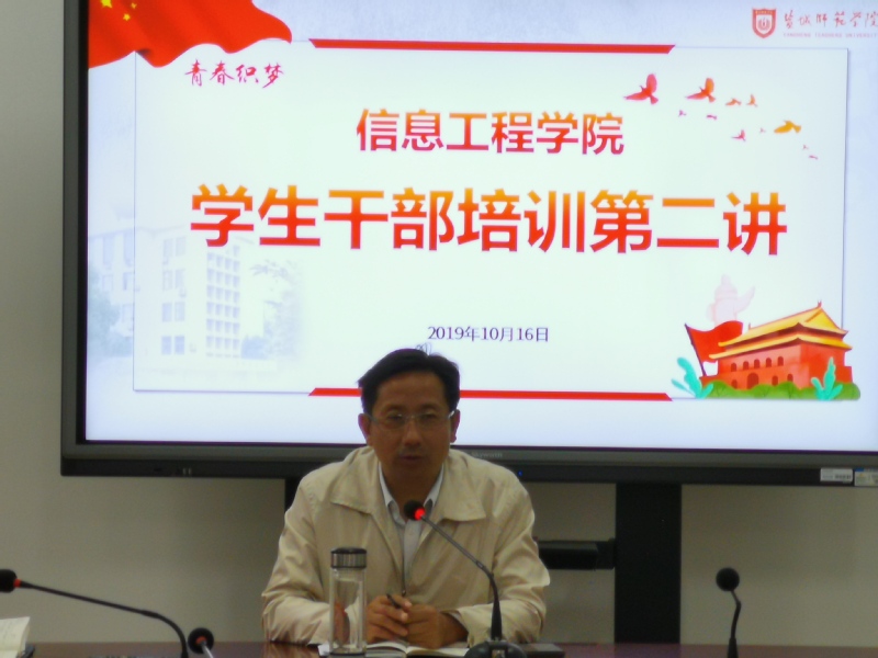 10月16日下午,信息工程开元(中国)一站式服务平台2019年秋学期学生干部培训第二讲开讲,党总支副书记、副院长赵任凭担任主讲。讲座由团总支副书记卞雅妮主持。学生会新晋干部,19级新晋班长、团支书参加。