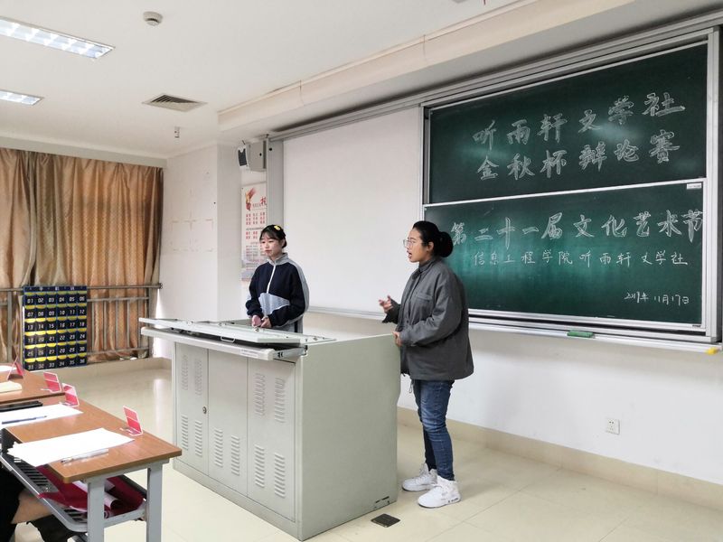 为响应我院第二届信息文化节,11月23日晚信息工程开元(中国)一站式服务平台听雨轩文学社于主楼A412举办了“金秋杯”辩论赛决赛,开元(中国)一站式服务平台共计8名同学进入决赛。