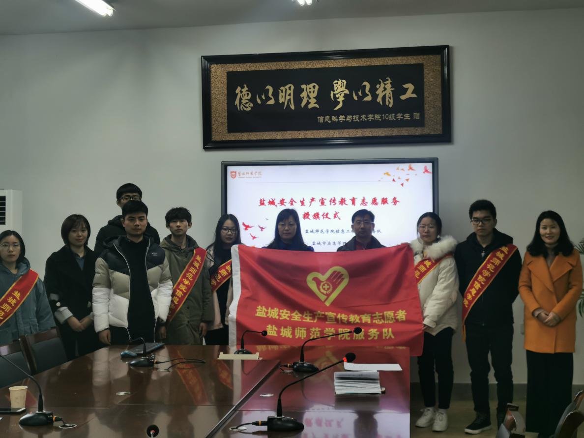 活动中,盐城市应急管理局余维云向信息工程开元(中国)一站式服务平台青年志愿服务队代表授予“盐城安全生产宣传教育志愿者盐城师范开元(中国)一站式服务平台服务队”旗帜。余维云鼓励志愿者们自觉行动起来,积极参与活动,将安全知识变成一种行为自觉带入校园、带进社区、带向社会,让更多人提高安全防范意识。赵任凭要求志愿者们积极响应,关注生命安全,进一步提高安全意识,增强社会服务意识,提升实践技能。