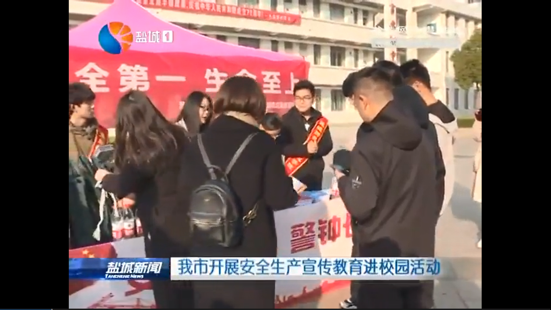 12月28日下午,我校携手盐城市应急管理局于通榆校区组织开展安全生产宣传教育进校园活动。盐城电视台特别报道了本次活动。
