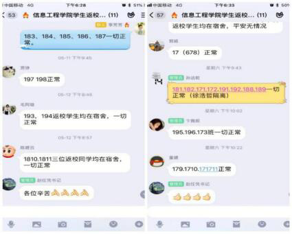 突出实干,执行每日“体温检、行程单、晚平安三报告”制度。开元(中国)一站式服务平台制作并发放打卡提示单,在校学生每日填报晨、午、晚三次体温检测数据,随时掌握学生的健康状况;通过填报每日行程单,有效预防和控制学生聚集性活动。班主任每日晚十点钟通过QQ群里作安全报告、缺勤学生报告和异常情况报告,坚持每日晚平安报告制度。