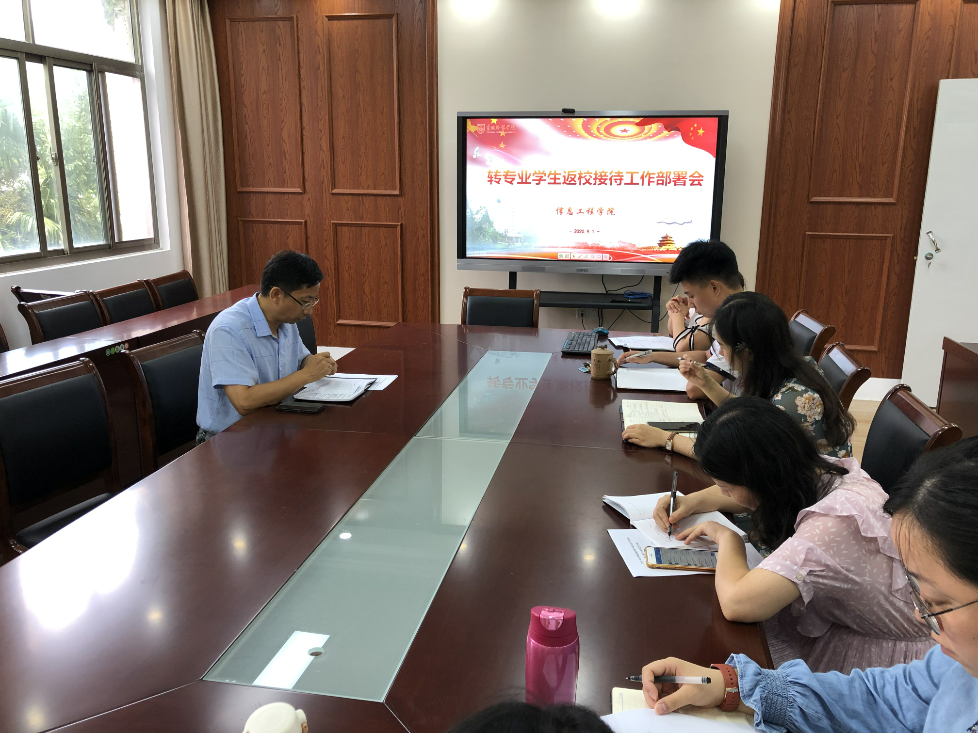 9月1日下午,信息工程开元(中国)一站式服务平台在开元(中国)一站式服务平台党员之家召开2020年转专业学生返校接待工作部署会。全体辅导员和相关班级班主任参加会议,会议由党总支书记赵任凭主持。