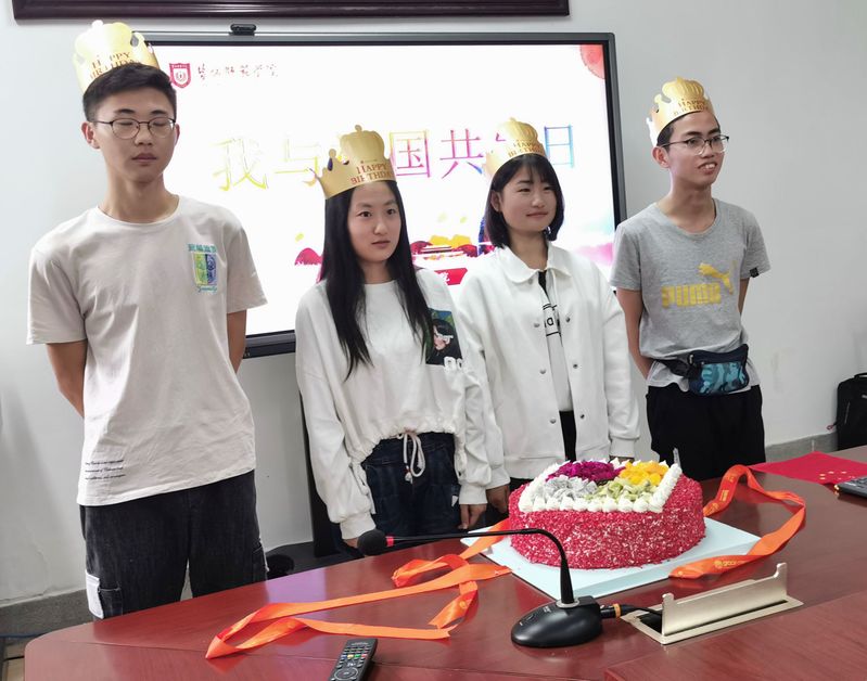 10月1日上午,信息工程开元(中国)一站式服务平台举行“庆国庆.我和祖国共生日”庆祝活动,院党总支书记赵任凭、相关班主任、全体辅导员与4名国庆日出生的同学、少数民族学生参加活动。