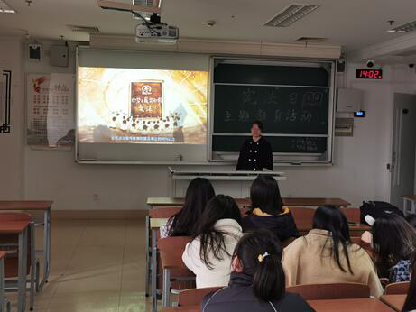 团总支书记卞雅妮表示,弘扬宪法精神,树立宪法权威,要把普法教育、依法治校、依法施教作为创建安全文明校园的重要工作,让青年大学生们成为社会主义法治的忠实崇尚者、自觉遵守者和坚定捍卫者。