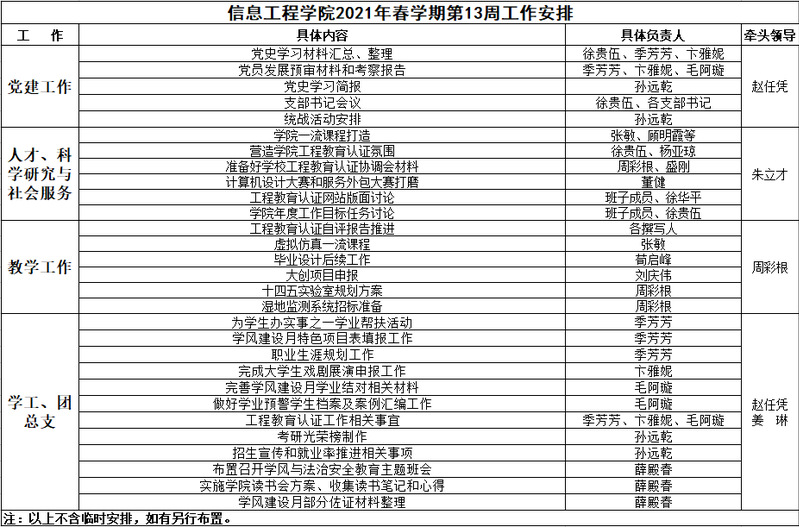 信息工程开元(中国)一站式服务平台2021年春学期第13周工作安排