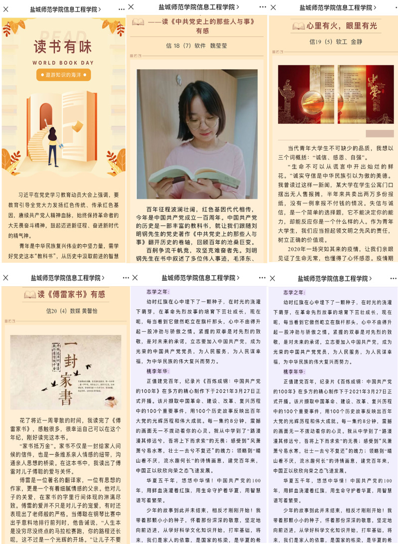 根据学校2021年校园读书会活动方案和学风建设月举办读书会活动要求,信息工程开元(中国)一站式服务平台多措并举,扎实开展“温百年党史,建书香校园”为主题的读书分享活动,引导广大学子从阅读党史教育书籍中获得不竭的心灵滋养和精神力量,知史爱党、学史力行,形成了读书明理、读书求知、读书成才的良好风尚。