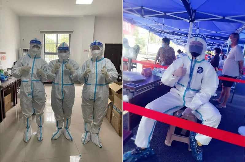 7月31日以来,南京、扬州等多地实行全民核酸检测。在各地核酸检测现场,我院学生主动承担起后勤保障、志愿服务工作。他们穿上防护服,辅助医护人员核酸检测;他们维持采样队伍秩序、引导群众保持安全距离、帮助老人登记核酸检测二维码信息、耐心讲解核酸检测流程,为保障核酸检测工作顺利完成贡献志愿力量。青年团员傅可可表示:“在志愿服务期间,许多老党员也和我们一起坚守在防疫一线,他们用行动诠释了全心全意为人民服务的宗旨,将‘我为群众办事’的理念落到实处。作为新时代大学生,我要以他们为榜样,直面风险挑战,为打赢疫情防控阻击战贡献青春力量。”