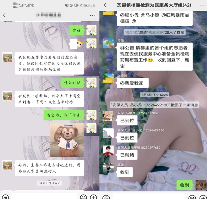 南京疫情爆发后,吴向舒同学第一时间向社区报到,成为了疫情防控工作的“守门员”:“党史学习教育让我收获很多,很多青年大学生跟我一样,在读史、明史的过程中,提升了民族自豪感,坚定了道路自信、理论自信、制度自信、文化自信,真正意识到我们青年一代肩上这份沉甸甸的责任与使命,想为国家为社会出一份力。我负责社区出入人员体温测量和苏康码、行程码查验工作,接触人员更多,风险更高,但是为了公共安全,总有人要负重前行。”还有很多像她一样的同学,披上红马甲,戴上口罩,积极参与家乡卡点值班工作,对过往车辆及人员实施疫情排查防控,对人员进行体温检测,检查健康码行程码,每车做好登记,确保不漏一人一车。