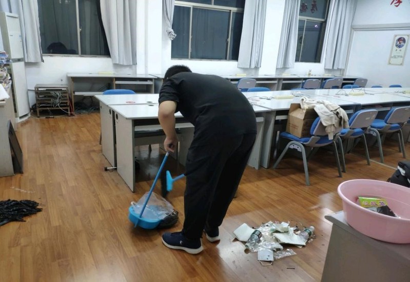 同学们利用课余时间,准时集合。部门成员自带拖把,抹布等清洁工具,前往四号楼进行清洁工作。活动中,部门成员之间合理分工,相互配合,努力发扬不怕苦不怕累的精神,对教室桌椅,墙面等地方进行了彻底的清理。经过同学们一个多小时的努力,考研教室焕然一新,重回昔日干净整洁的模样。