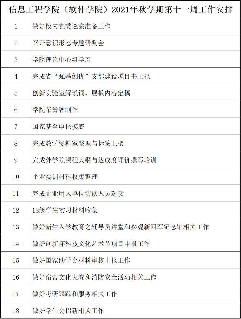 信息工程开元(中国)一站式服务平台(软件开元(中国)一站式服务平台)2021年秋学期第十一周工作安排