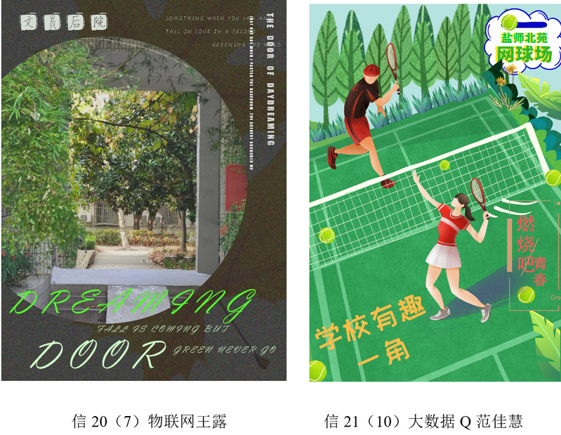 活动共收到了来自8个专业同学制作的作品40份。每一位同学都将自己对盐师深深的热爱表现得淋漓尽致,每一份作品都饱含着同学们对校园优美环境的赞美之情。同学们运用不同的元素进行创造,富有青春活力与朝气蓬勃的风格展现了盐师学子对学校的独特见解和对未来生活的无限憧憬。