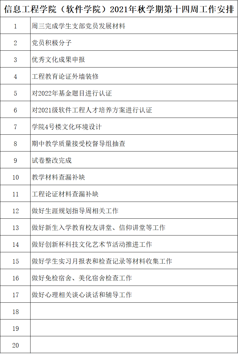 信息工程开元(中国)一站式服务平台(软件开元(中国)一站式服务平台)2021年秋学期第十四周工作安排