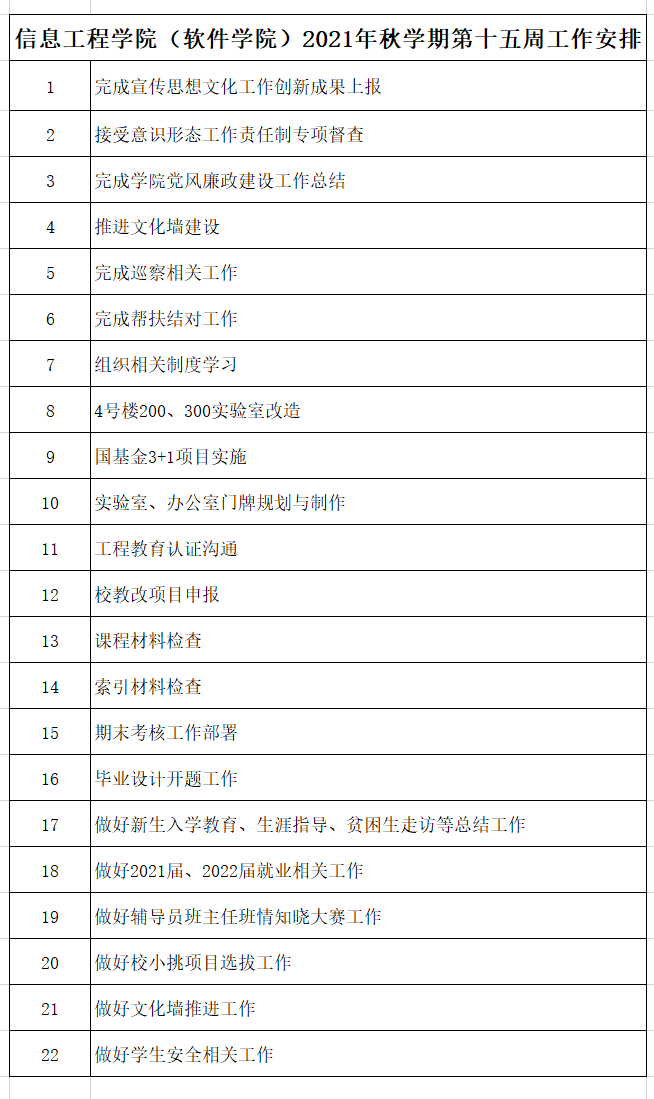 信息工程开元(中国)一站式服务平台(软件开元(中国)一站式服务平台)2021年秋学期第十五周工作安排