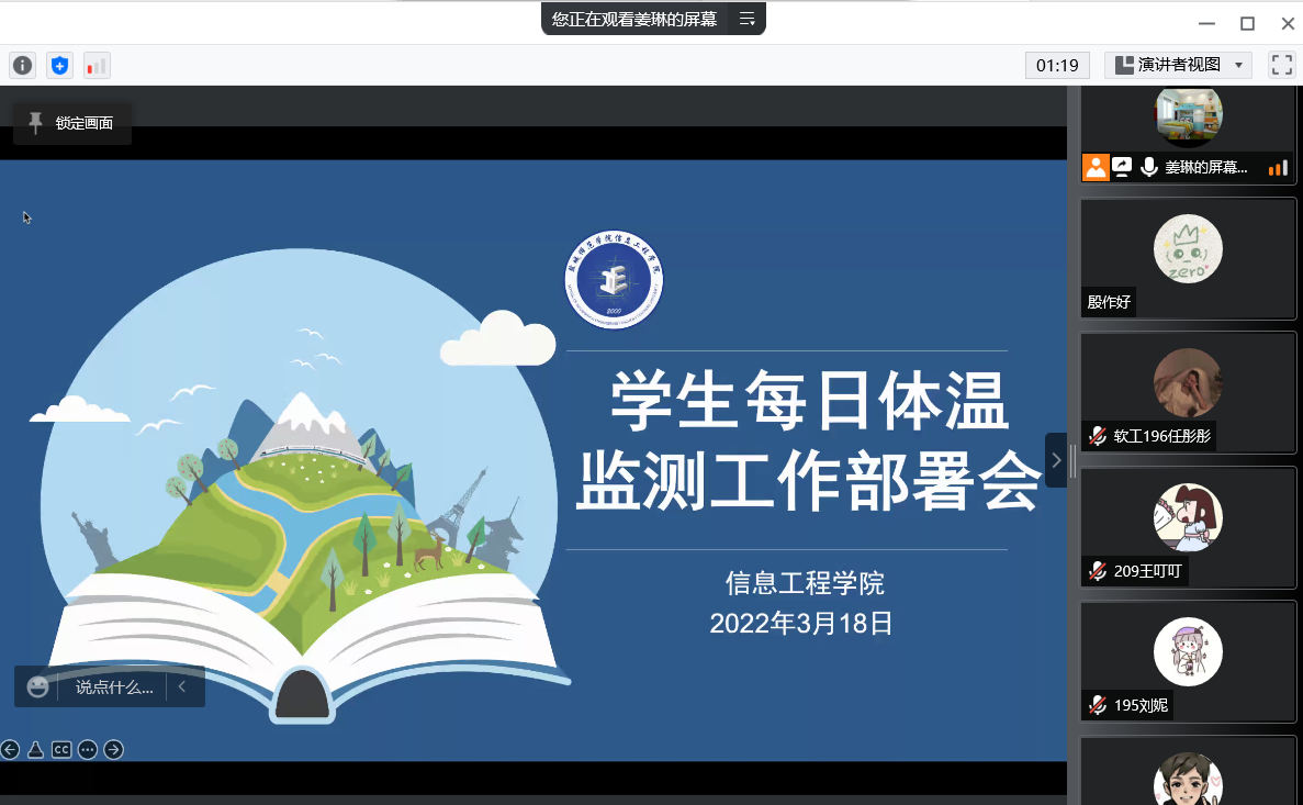 开元(中国)一站式服务平台在3月18日召开学生每日体温监测工作部署会,由班级副班长担任测温员,会议明确测温员工作职责,建立每日班级体温汇报制度并要求测温员发现体温异常者立即上报开元(中国)一站式服务平台;针对前期发放的额温枪损坏或丢失等情况,辅导员紧急购置额温枪,确保每班额温枪不少于两把;测温员每日定时开展测温工作,并将相关情况在体温监测群中汇报,形成健康监测闭环管理。
