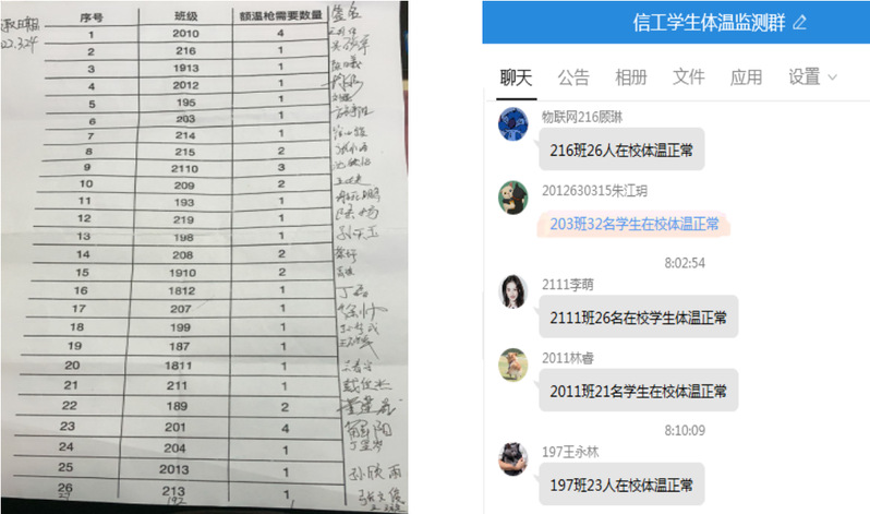 为加强在校学生晨午晚检工作,严格落实每日健康监测,保证第一时间发现体温异常情况并能及时规范处置,信息工程开元(中国)一站式服务平台建立“宿舍—班级—开元(中国)一站式服务平台”三级体温监测工作机制,以最小网格化管理织密织牢疫情防控网。