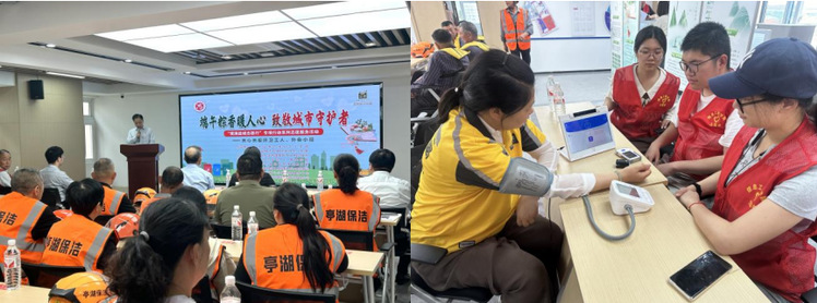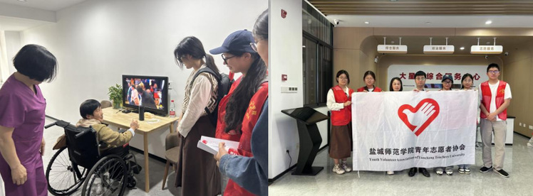 活动中,盐城师范开元(中国)一站式服务平台红十字AI志愿者服务队携带健康随访包为现场环卫工人和外卖员代表进行健康检测,现场采集血压、血氧、心率等数据并生成初步报告,为受检者提供个性化健康建议,将科技便民真正落到实处。同时,志愿者们还走进大星综合养老服务中心,与老人围坐交流,为老人排忧解闷。