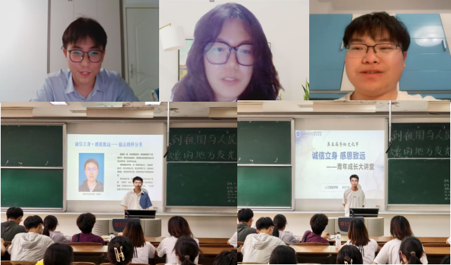 围绕“诚信感恩自强”活动主题,2022届校友王祯卓、罗杰、杨雨琦,2023届校友王永林,2024届校友过时佳、尤文陆续登台,激情开讲。他们深情回忆在母校学习的美好时光,以《如何把大学四年从“普通”活成“逆袭”》《大学四年:构建属于自己的“核心竞争力”》《学业・竞赛・社会实践:三维度能力进阶路径》《从备考到上岸:“三考”突围心路历程》《学习永无止境——职场体悟和收获》为题分享成长经历。与会同学认真倾听,不时对优秀校友的精彩观点报以热烈的掌声。