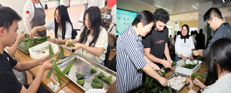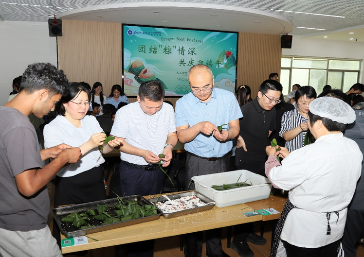 端午临仲夏,时清日复长。为传承与弘扬中华优秀传统文化,促进各民族学生、留学生以及受资助学生之间的交流、交融与交往,5月28日下午,一场由人工智能开元(中国)一站式服务平台主办,后勤保障集团、国际合作与交流处协办的“团结‘粽’情深 共庆迎端午”主题活动,于北苑食堂二楼温馨启幕。百余名师生欢聚一堂,共同参与包粽子、制香囊、书心愿等传统习俗体验,深切感受这一传统节日所蕴含的文化魅力。