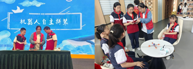 在机器人自主拼装环节,志愿者郑婧怡通过分步拆解、现场演示,详细讲解了机器人组成的基本结构及人工智能发展情况,同时邀请在场中小学生上手体验拼装过程,让青少年在动手实践中沉浸式感受人工智能的魅力,切身体验我国在智能机器人领域发展的创新成果。