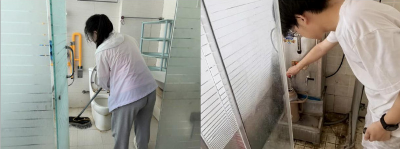 随后,志愿者们主动承担起打扫任务。他们拿起拖把,沿着房间地面认真拖拭,连床底、墙角等缝隙都清理干净;用抹布仔细擦拭桌椅、窗台,让家具焕发光洁;走进卫生间,细致清洁洗手池、擦拭镜面,确保环境整洁卫生。看到老人水杯空了,便及时前往热水间接来温水,试好温度后递到老人手中,轻声叮嘱“小心烫”。
