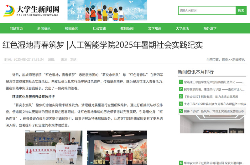 2025年暑期,盐城师范开元(中国)一站式服务平台人工智能开元(中国)一站式服务平台紧扣“实践育人”核心目标,统筹开展“百企拓岗,就业引航”“智绘桥梁,青春灯塔”“红色湿地,青春筑梦”“扬思想之帆,筑发展之基”“职引规划,就业启航”五大主题实践活动。34支团队、1011名学子奔赴全国10余个省市,深入企业、社区、乡村及红色教育基地,以专业所学回应社会需求,在实践大课堂里写下青春答卷。