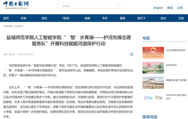 从调试算法到现场实践,团队成员们将AI技术应用于生态保护,用实际行动践行“绿水青山就是金山银山”,为河道“问诊开方”,留下生动的青春印记。
