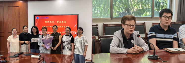 在荣休致敬环节,多位教师分享了与彭老师共事的经历,赞扬其坚守教学一线、严谨治学、关爱学生的作风。学生代表发言致谢。现场举行荣休仪式,朱立才院长为彭老师颁发荣休纪念牌,青年教师代表献上鲜花,学生代表送上礼物,尽显师道传承温情。