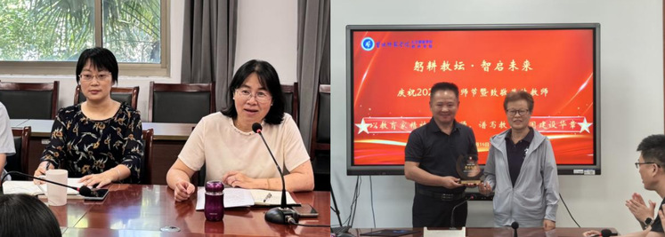 彭老师在感言中分享了从教三十多年的心得体会,勉励青年教师珍惜讲台时光、保持学习热情、注重身心健康。