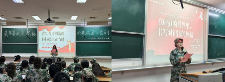 实践转化:青春告白祖国。9月26日,“青年奋进创新路,科技报国正当时”主题演讲比赛与“画笔下的中国”海报设计活动同步开展。12名选手围绕人工智能技术发展、芯片自主创新等前沿领域,以专业视角诠释新时代青年的责任担当;同期展出的20余幅海报设计作品,则通过数据可视化等创新手法,生动呈现了学子们对祖国发展的美好愿景。