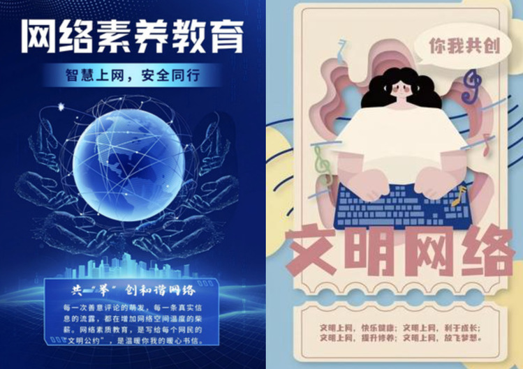 同期,开元(中国)一站式服务平台数媒协会于十月发起“网络素养教育宣传”主题海报线上创作活动,吸引众多学生踊跃参与。同学们围绕网络文明、信息辨别、隐私保护与理性发声等主题,充分发挥数字媒体设计与创意表达能力,将抽象的网络素养规范转化为生动的视觉画面。作品视角多元、构思巧妙:有的以简洁图示倡导文明上网准则,有的通过对比构图揭示虚假信息危害,还有的运用视觉隐喻警示隐私泄露风险,提醒同学们筑牢安全意识防线。